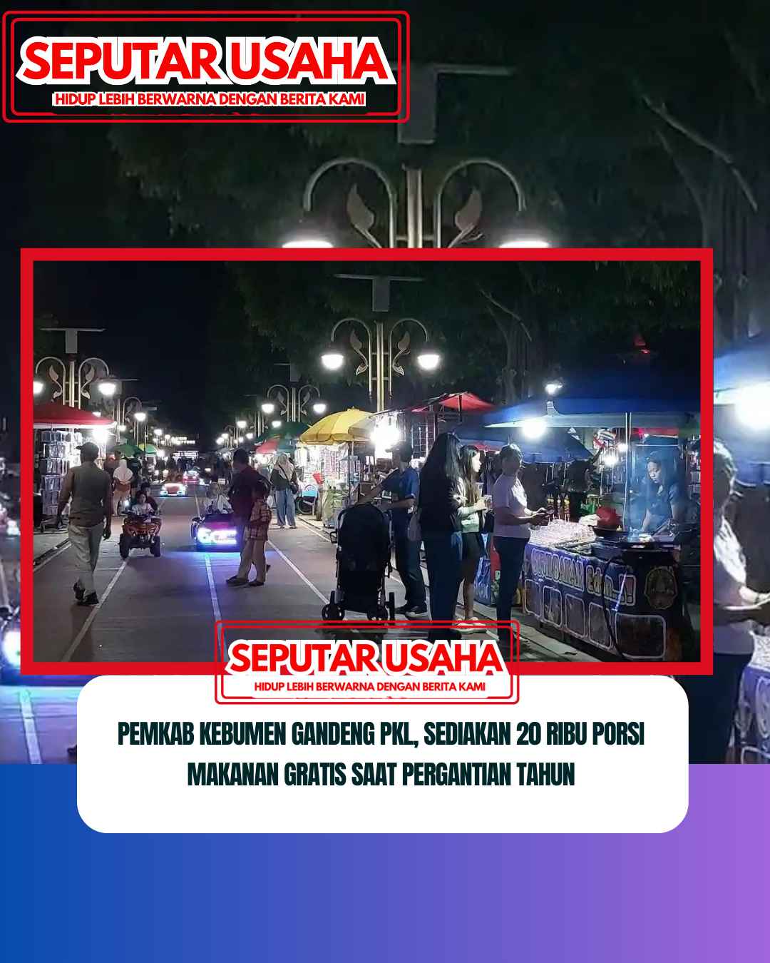 www.Seputar Usaha.com.ǁJawa Tengah 29 Desember 2025-Pemerintah Kabupaten (Pemkab) Kebumen menggandeng Pedagang Kaki Lima (PKL) di kawasan Alun-alun Pancasila untuk turut memeriahkan malam pergantian tahun.
